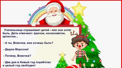 На новогодних каникулах нет ничего лучше, чем отдыхать и веселиться. Давайте посмеёмся вместе! А ты кем хочешь быть? Тебе нравится работа Деда Мороза? Ответь в комментариях. А как по-вашему, Дед Мороз,...
