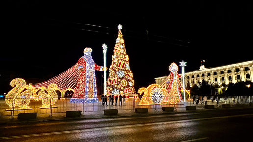 Новогодний Симферополь в декабре 2025. Гигантские фигуры на площади Ленина