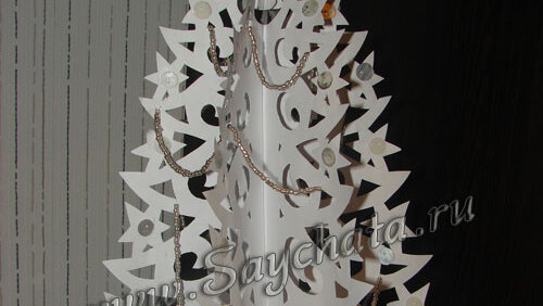 Рецепты на Saechka.Ru343 читали · 7 лет назадПодписатьсяЁлочка из бумагиАжурная ёлочка сделана из бумаги, украшена пайетками и бусами из серебряного бисера. Как сделать: Техника: Материалы: Делаем ажурную елочку из бумаги: