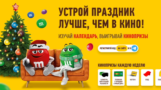 🍬 Подарки за конфетки: Очки VR, ТВ, Ноутбук и другие крутые и не очень призы 😱 Запускай адвент-календарь, собирай коды и выигрывай ценные призы! Только представь: уютный зимний вечер, любимые M&M’s или Skittles, новогодняя магия вокруг и шанс на крутые подарки! Что может быть лучше?