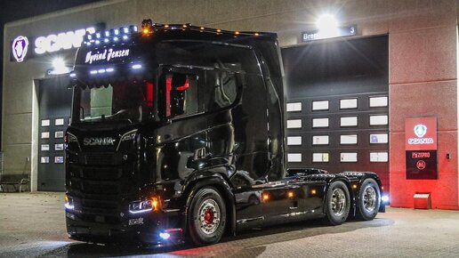 Этот замечательный тягач Scania 770S XXL недавно стал подарком для босса, который управляет автопарком из 40 грузовиков, и в то же время не собирается отказаться от удовольствия водить грузовик. Данный автомобиль недавно пополнил автопарк норвежской транспортной компании Øyvind Jensen Termotransport. Ее директором в настоящее время является Эрик Йенсен. Он сын основателя компании, и работает в семейном бизнесе с 19 лет. 5 февраля этого года ему стукнул «полтинник», и по случаю юбилейного события в компании появилась эта самая уникальная Scania...