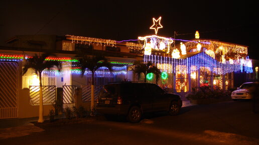 Уточняю, это записи от 2012 года. Рассказываю нашу историю празднования в конкретной семье. Нынешний Новый Год, мы также встречаем в тропиках, но уже Никарагуа. Это будет уже 5-й жарко-пляжный праздник. Но про это позже. На костариканских просторах намечается наш третий Новый Год! Большая часть населения – католики, поэтому тут всё не как у людей, то есть русских, начинают ёлки украшать да окна декорировать лампочками уже в начале ноября. К 24 декабря все светится и горит, как выразилась одна моя тико -приятельница Мария, словно взлетно-посадочная полоса...