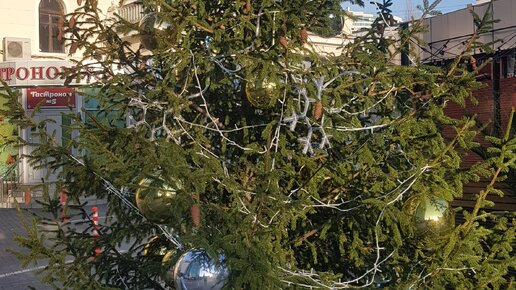 Сочи - город контрастов. Как бы не звучало это затасканно. Не терпится поделится своим наблюдением. Так как часто бываю в районе центрального рынка - увидел как на площади устанавливают очень красивую елочку. И стройная и пушистая, Одним словом красавица. На следующий день ее начали наряжать...