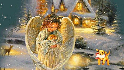 Привет всем-всем-всем! Новогодние праздники как-то успокаиваются. Им на смену приходят — православные, настоящие! И я поздравляю всех читателей с Сочельником и наступающим Рождеством Христовым! Изумительная картинка, не правда ли?! Расчудесный трогательный ангелочек согревает на руках маленького котёнка. Щенок несёт благую весть, интересный вариант. Слева лесная козочка сопровождает ангелочка, непременно. И охраняет лесной покой и тишину. Именно, в таком умиротворении должно произойти чудо Рождения нашего Спасителя...