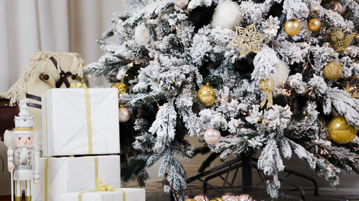 Украшение дома к Новому году: «заснеженная» ёлка, снег под ногами, падающие снежинки