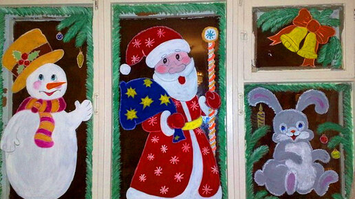 Новогодние рисунки на окнах.