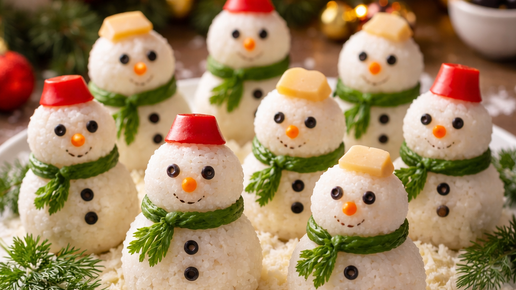 Когда за окном мерцают гирлянды, а дом наполняется ароматами праздника, хочется удивить гостей не только вкусом, но и подачей. Снеговики из риса - это нежная, сытная и одновременно сказочная закуска, которая мгновенно создаёт новогоднее настроение...