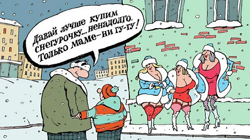 Корпоративы, задорные снегурочки и горячие снеговики в зимних карикатурах разных авторов
