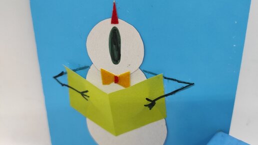 Новогодняя поделка, открытка. Снеговик с пожеланием