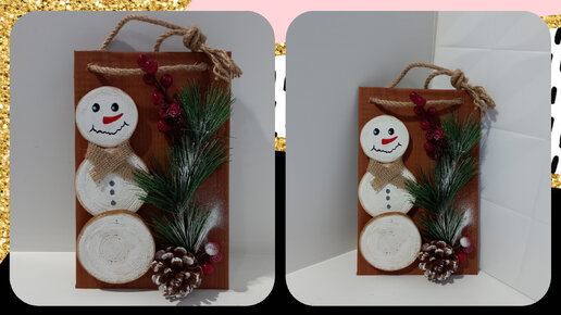 Снеговик.Настенное панно.Поделки из картона и дерева