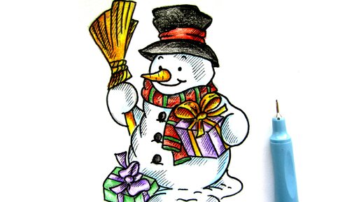 Дед Мороз и его внучка Снегурочка часто пестрят на открытках и всевозможных елочных украшениях. Однако, есть и другие прекрасные и добрые герои. Например, снеговик. Можно нарисовать снеговика не только в виде трех окружностей, но и составить интересную иллюстрацию. В ней красиво располагаем главного персонажа на этом альбомном листе. «Наряжаем» его в шляпу и шарф. В правую руку помещаем подарок, а в левую – метлу. Дополняем рисунок мелкими элементами и раскрашиваем яркими цветами. Так и получаем рисунок снеговика на Новый год 2020...