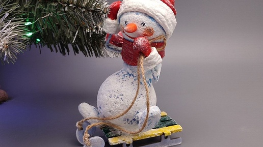 Всем привет! Готов новый Снеговик под елочку или для украшения интерьера! Материалы: вата, санки из фанеры, акриловые краски и лак, джут, полимерная глина, блестки. Высота 19 см. Устойчивый и легкий. Есть в продаже на OZON https://ozon...