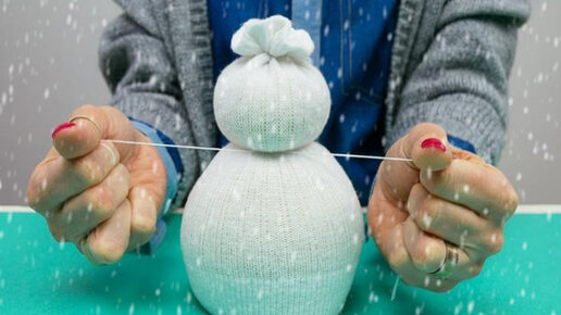 Снеговик из носочка за 10 мин ❄ Простая поделка на новый год )