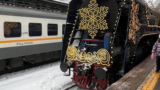 волшебного экспресса. Завтра представление повторится. Путешествие Деда Мороза по городам России стартовало 19 ноября из Владивостока. Состав сделает остановки в 70 городах. Вернуться в Великий Устюг он должен 11 января. Впервые поезд Деда Мороза отправился в путь 5 декабря 2021 года. За четыре года он посетил 302 города, преодолел свыше 108 тысяч километров и провел в пути 244 дня...
