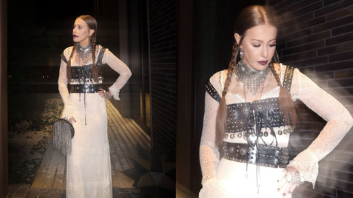 Мы продолжаем разбирать новогодние образы звёзд в деталях. Этот образ, когда я его увидела, привёл меня просто в восторг. Я даже не знаю, как точнее описать это чувство. Он моментально попал в мои личные референсы того, как сегодня нужно создавать сложные, эклектичные образы. Перед нами именно такой случай. В этом выходе Ксения Собчак показывает не просто праздничное платье, а целую визуальную историю. В образе есть две ключевые составляющие, которые делают его по-настоящему запоминающимся. Белое...