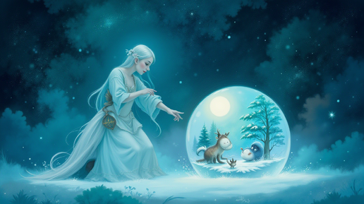 В одном далеком селе, окруженном высокими горами, жила-была Снегурочка – красавица с белоснежной кожей и волосами, как снег. Она была дочерью зимы, и каждый год, когда морозы приходили, она выходила на улицу, чтобы порадовать людей своим танцем. Однажды, когда Снегурочка гуляла по лесу, она наткнулась на старую, покрытую мхом избушку. Любопытство взяло верх, и она вошла внутрь. В избушке было темно и тихо, но вдруг она заметила на столе магический шар, который светился мягким голубым светом. Снегурочка...