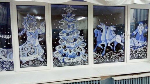 Расписываем гуашью окна в зимнем стиле