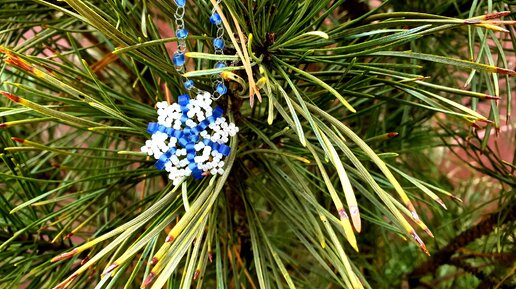 Чтобы изготовить снежинку нужен самый минимум расходных материалов: 2-3 цвета бисера, нить с иголкой (можно вместо ниток тонкую леску, но лично Я пользуюсь мононитью) и ножницы, чтобы обрезать нить. Для начала нужно обрезать нить (примерно 2м) и вдеть нить в иглу. Плести лучше в 2 нити. Далее закрепляем нить, 2 раза продев иглу в 1 бисеринку. 1 ряд: набираем ещё 2 к первой бисеринке и снова продеваем в 1. 2 ряд:2 между каждой бисериной 1 ряда добавляем по 1. 3 ряд: между бисеринами 2 ряда набираем 2 белые, 1 синюю, 2 белые...