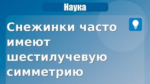 Снежинки часто имеют шестилучевую симметрию. Структура льда образует гексагональные узоры при росте кристалла. Интересный факт по теме «Наука»: Снежинки часто имеют шестилучевую симметрию. Почему так: Структура льда образует гексагональные узоры при росте кристалла...