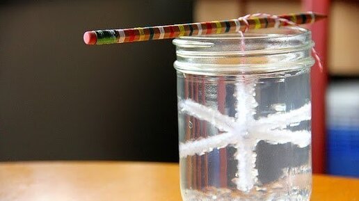 Пожалуй, всем известно, что детей бывает очень трудно заинтересовать каким-нибудь делом. Да не просто чем-то развлекательным, а ещё и познавательным. Но решение можно найти всегда. Например, сделать снежинку из кристаллов соли! Сегодня мы расскажем, как изготовить эту чудо-снежинку и весело провести время со своими детьми. Для «солёной» снежинки вам понадобятся: · белая пушистая (синельная) проволока (3 кусочка длиной 6-7 см); · пустая стеклянная банка (0,5 литра); · поваренная соль (приблизительно 18 чайных ложек); · белая нитка и деревянная палочка...