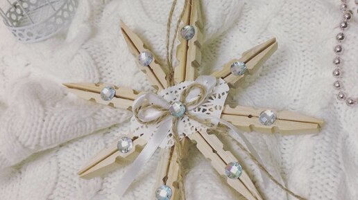 Новогодняя поделка в садик.Снежинка из прищепок 🙌