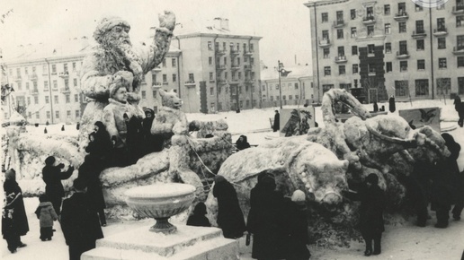 Снежные скульптуры (фигуры Деда Мороза, Снегурочки и лисы, в запряжённых лошадьми санях) у ДК им. И. В. Сталина (ныне ДК им. А.Г. Солдатова). Дата съемки: январь 1956 год Автор фото: В.В. Реймерс Архив города Перми #Пермь #ИсторияПерми #ПрошлоеПерми #СтараяПермь https://vk...