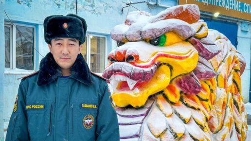 В Якутии сотрудники МЧС сделали яркие снежные фигуры драконов