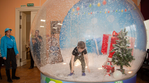Шиншилла, гигантский снежный шар и «Киберснеговик»: МИРовой Дед Мороз поздравил пациентов Филатовской больницы
