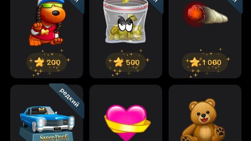 Вышли новые подарки из клипа Снуп Дога 😳 new gifts released 🎁 200⭐️— 600k gifts 🎁 500⭐️— 240k gifts 🎁 1000⭐️— 120k gifts 🎁 5000⭐️— 24k gifts 🎁 10000⭐️— 12k gifts Кто что успел взять?
