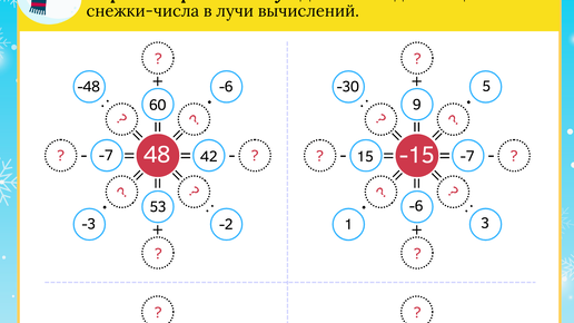 Каждый луч снежинки — это пример. Находим недостающее число и добавляем снежок в луч с примером. 📎 Забирайте файлы за ❤️ = Спасибо! ...