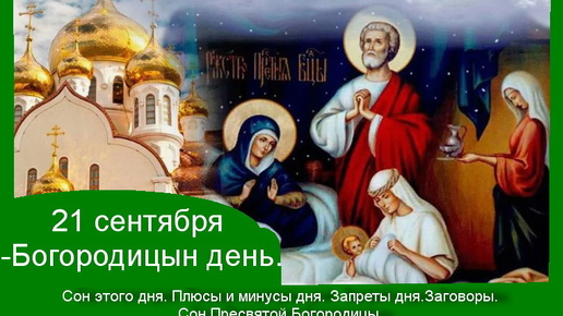 21 сентября -Богородицын день. Сон этого дня. Плюсы и минусы дня. Запреты дня. Заговоры. Сон Пресвятой Богородицы.