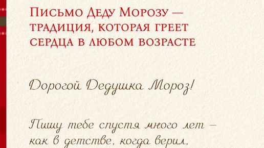 ! ❄️ И пусть мы взрослеем, меняем города и увлечения, но есть одна традиция, которая остаётся дорогой каждому, — писать письмо Деду Морозу ✉️✨ 🎄Мы часто говорим детям о том, как важно верить в чудо… Но ведь и нам, взрослым, иногда нужно ненадолго остановиться и вспомнить: чудеса происходят, когда в них верят...