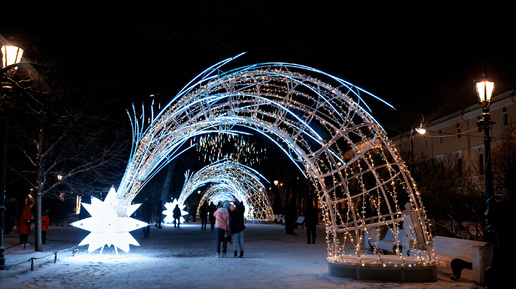 В дополнение к традиционным украшенным местам и ярмаркам, показываю, что появилось новенького, где можно погулять и посмотреть украшенные места в новогодние каникулы в Петербурге. Здесь, на центральной дорожке вдоль Адмиралтейства, появились световые арки в виде падающих звёзд. Но и по сторонам посмотреть не помешает. С одной стороны - карета. С другой - традиционный фонтан. А между деревьев, в Александровском саду прогуливаются парочки. Самое интересное впереди - это новое украшение "Млечный путь"...
