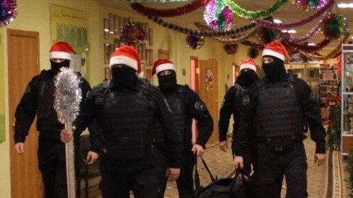 Смотрится зашибись, и даже на первый взгляд может показаться, что это кадр из фильма. Но абсолютно нет. Это сотрудники спецназа пришли деток поздравлять с праздником. Тем более, что у детей другое восприятие таких грозных дядей, чем у взрослых. Но поверьте, что это было в реалии, а не какой-то кадр из фильма. И произошло это в городе Ноябрьске в детском доме «Семья». Тем более, что сами знаете, как дети ждут этого праздника, чудес. И спецназ не первый раз приходит к деткам, но вот в такой экипировке впервые...