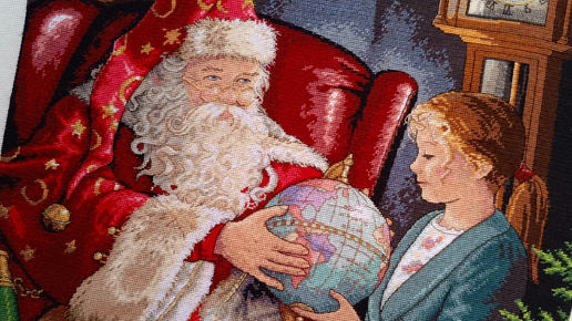 Невероятный!😍 И я вышила его за 47 дней!.. Это был второй большой новогодний сюжет от Дименшенс в моей коллекции, который я взялась вышивать в уходящем 2025-ом. Набор с артикулом 08803 Dimensions с названием One Christmas Eve, что в переводе на русский - В канун Рождества. По-вашему, это Санта Клаус в центре сюжета на вышитой работе? А по-моему, это сказочный волшебник, который в новогодние каникулы однажды нагрянул в гости к хорошей девочке и подарил ей веру в чудо! Именно так и написано у меня на вышитой работе - на бирке от глобуса...