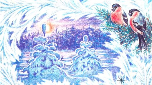 Как нарисовать Новогоднюю открытку. Рисуем снегирей