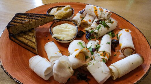 Поел на вотчине у Деда Мороза. Показываю, сколько стоил обед на две персоны (не так уж дорого)