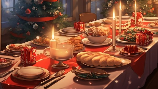 Новогодний стол — это символ праздника и семейного уюта. Обычно он украшен разнообразными блюдами и закусками, которые отражают традиции и вкусы собравшихся. На новогоднем столе можно увидеть: Стол украшен красивой посудой, свечами, новогодними декоративными элементами. На нём также могут быть ёлочные ветви или небольшие ёлки, чтобы создать атмосферу праздника. Часто на новогоднем...
