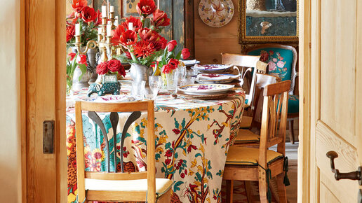 В нашей стране Новый год традиционно отмечают за столом. Поэтому в этом досье — примеры торжественных и семейных столовых, а также советы дизайнеров о том, как создать праздничную атмосферу. Парадная столовая по проекту Александра Кратовича Этот дом по проекту Александра Кратовича в Юрмале — будто родовое поместье с историей. Тут есть и семейная столовая, и парадная. Первая находится в бельведере, а вторая — как раз на этой фотографии. Три больших окна выходят на террасу, где стоит шатер. Вот что...