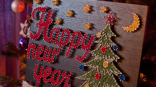 Новогодняя пора – период приятных хлопот. Но помимо того, чтобы купить подарки, продумать праздничное меню, нарядить елку, нужно еще задуматься об украшения помещений квартиры, или офиса. И конечно же, лучший подарок - это тот, который выполнен своими руками с теплом и заботой, будет согревать Ваши сердца и на полнит праздничным уютом Ваш дом. String art («изонить») — одно из направлений в hand made творчестве, в основе которого гвозди и нити. String с английского переводится как струна или веревка, то есть String Art можно перевести с английского, как «искусство ниток, струн»...