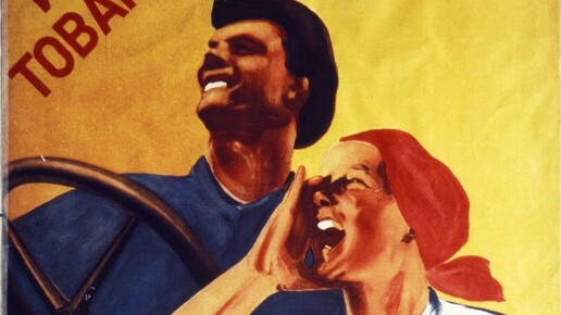 В 1930 году художница Вера Кораблева создала агитационный плакат «Иди, товарищ к нам в колхоз!» в модном тогда конструктивистском стиле. Рисунок этого плаката прямо перекликается с одной весьма известной фотографией Лили Брик и плакатом Родченко «Покупайте книги Ленгиза», в котором она была использована. Вера Кораблева использовала похожий рисунок для колхозницы, зовущей других присоединяться к ней в колхозном строительстве. Наглядная агитация – это ладно. Но в колхозы загоняли и более яркой агитацией...