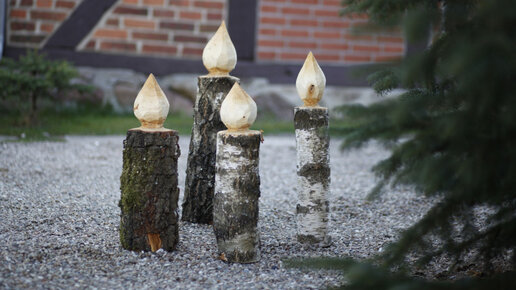 Новогоднее украшение для сада: четыре деревянные свечи под елку своими руками