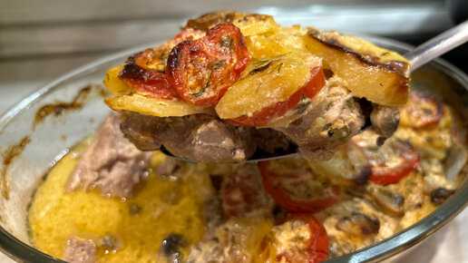 Меня часто выручает такое блюдо на праздничное застолье. Сразу подаю на стол мясо с гарниром, это вкусно и очень вкусно! Приготовить его не составляет никакого труда, все смешиваю и в духовку. 🔵 Рецепт приготовления: 🔹 Мясо свинины -500-700 грамм, нарезаю на кусочки, добавляю приправу для свинины или можно свои любимые. Перемешиваю и оставляю мариноваться на 15 минут. 🔹 Затем готовлю остальные продукты. Беру картофель крупный - 3 штуки, предварительно очищаю от кожуры и нарезаю кругляшами. А также нарезаю свежие шампиньоны - 150 грамм, пластинками...