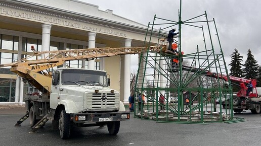 В центре Сызрани монтируют новогоднюю елку - приходите посмотреть