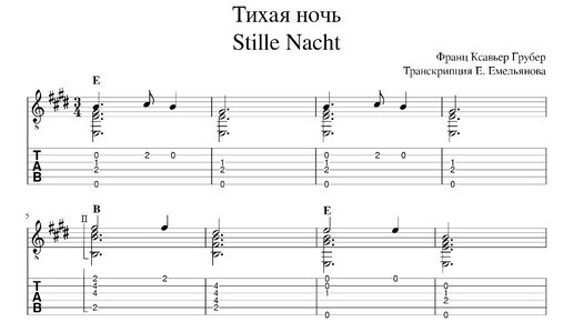 Stille Nacht, ноты и табы для гитары, 2 версии