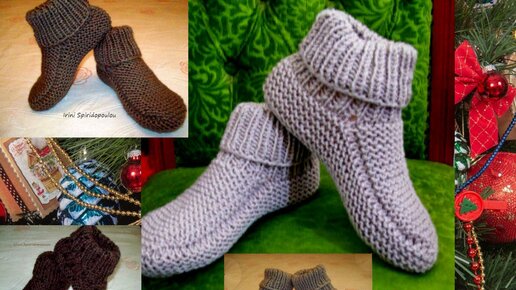 Новогодние тапочки - следки двумя спицами без швов.