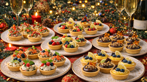 Новогодний стол — это всегда изобилие, красота и предвкушение чуда. И, конечно, не обойтись без закусок! Тарталетки — это идеальное решение для праздника. Во-первых, это быстро и просто: готовые корзиночки можно купить в любом магазине, а начинки готовятся буквально за считанные минуты. Во-вторых, это невероятно красиво: маленькие, аккуратные корзиночки с яркими начинками станут настоящим украшением стола. В-третьих, это удобно: порционная подача позволяет гостям легко попробовать все угощения....
