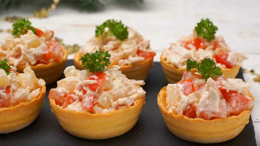 Тарталетки с курицей и ананасами. Закуска на праздничный стол