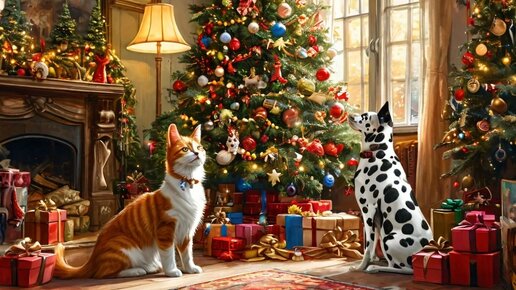 — Так, стоп. — сказала Хозяйка, хлопнув по столу рукой. — Мне кажется, кто-то из вас врет мне. Кот и Пес возмущенно переглянулись, а затем уставились на Хозяйку, сердито сметающую остатки игрушек и хлопушек, которые были развешаны на елке. Закончив, она повернулась, и грозно произнесла: — А теперь все с самого начала!... *** Версия Кота. Лежу я, значит, на подоконнике и смотрю в окно на идущий снежок и снующих туда-сюда людей, охваченных предпразничной суетой. Само собой, жду чуда ввиде рыбных вкусняшек от любимой Хозяйки...