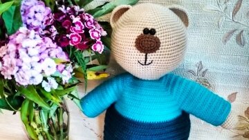 Автор МК Тамара Лашина. МАТЕРИАЛЫ: пряжа бежевого и коричневого цветов, крючок, игла, полубусины, наполнитель УСЛОВНЫЕ ОБОЗНАЧЕНИЯ: КА - кольцо амигуруми ВП - воздушная петля СБН - столбик без накида ПР - прибавка УБ - убавка ГОЛОВА: пряжа бежевого цвета 1: 6 СБН в КА 2: 6 ПР (12) 3: (1 СБН, ПР)*6 (18) 4: (2 СБН, ПР)*6 (24) 5: (3 СБН, ПР)*6 (30) 6: (4 СБН, ПР)*6 (36) 7: (5 СБН, ПР)*6 (42) 8: (6 СБН, ПР)*6 (48) 9: (7 СБН, ПР)*6 (54) 10: (8 СБН, ПР)*6 (60) 11: (9 СБН, ПР)*6 (66) 12: (10 СБН, ПР)*6...